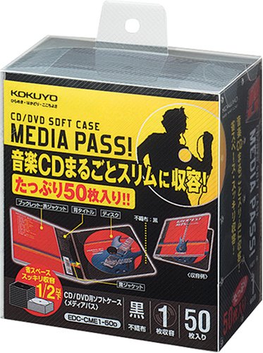 コクヨS&T CD/DVD用ソフトケース MEDIA PASS 1枚収容 50枚セット 黒 EDC-CME1-50D