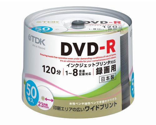 TDK 録画用DVD-R 日本製 1-8X ホワイトワイドプリンタブル 50枚スピンドル DR120PWB50PN