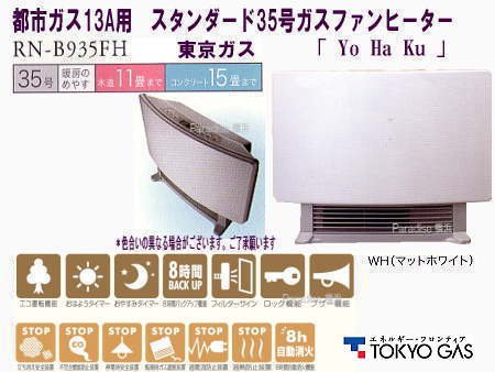 東京ガス(ノーリツ) スタンダード35号ガスファンヒーター YoHaKu 【ガス種:都市ガス12A13A用】 RN-B935FH-WH マットホワイト